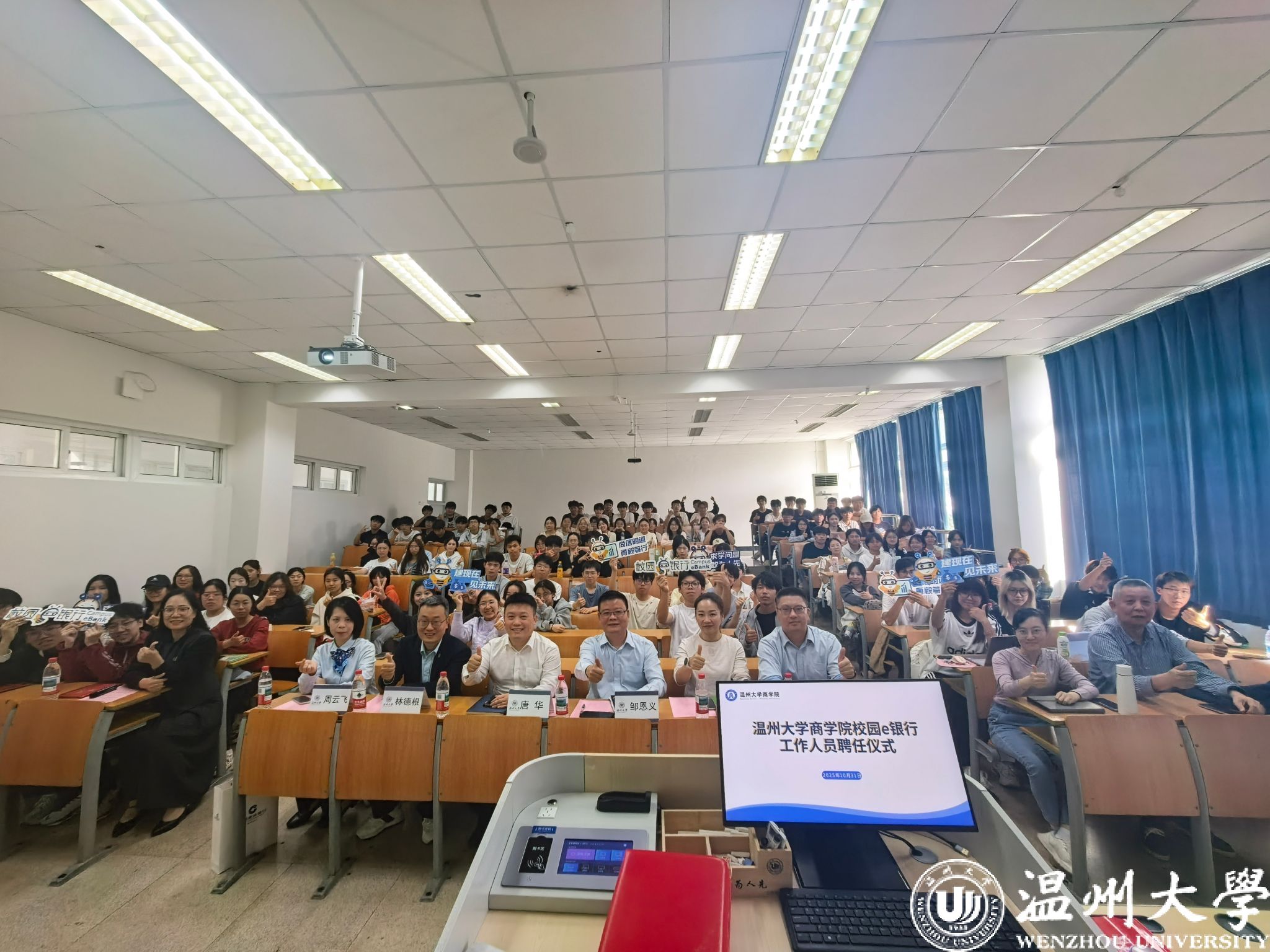 校园e银行工作人员聘任仪式在北2-411教室举行。本次仪式别开生面地融入2025级金融工程专业导论课堂,全体新生现场观摩。中国建设银行温州市分行网络金融部总经理邹恩义、调教视频
